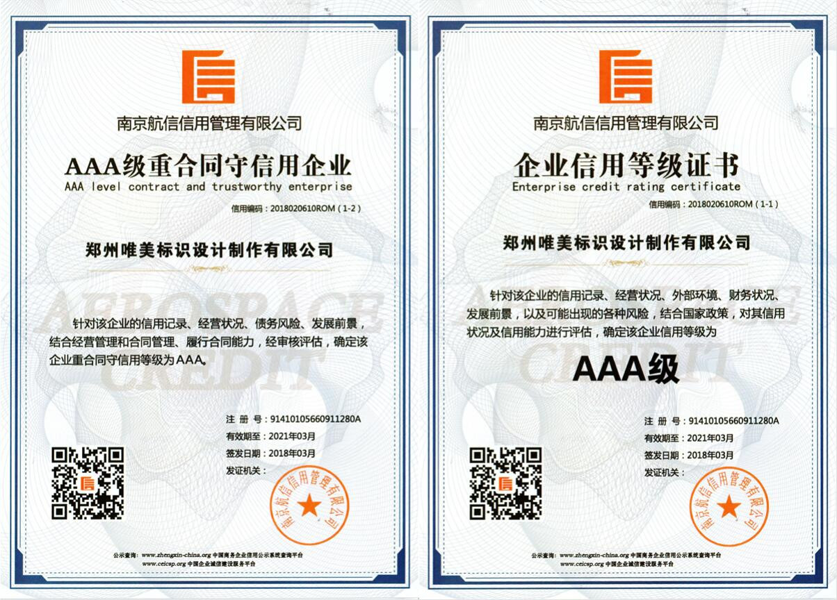 2024-3-21郑州唯美标识设计制作有限公司是一家专注从事地产住宅、商业广场、商务办公、医院系统、学校文化、工业园区、市政交通、旅游景区、酒店餐饮、银行金融、城市环境标识标牌系统规划、设计、制作、...